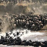 The lure of Tanzania has always been the same, the sheer variety of landscape, wildlife, human cultures and experience. Every year from Dec/March in southern Serengeti and Ngorongoro conservation area the great herds of the migrating wildebeest will drop their calves, it is estimated that approximately 750,000 wildebeest synchronize their birthing with all calves being born within a three-week period. This natural phenomenon draws the