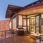 The main lodge appears to be have been carved out of the desert rather than built atop it so natural are the materials and so sensitive the architecture. At the base of a rocky mountain, Namib Outpost looks out across what must be one of the most spellbinding views on Earth: an uninterrupted panorama so vast it beggars belief, no hint of human habitation and an ever-shifting spectrum of blondes, browns, yellows and reds framed by a mountain range of Marsian hues topped with a deep blue sky only the world’s oldest desert can produce. Words are an insult; we suggest you witness it yourself.