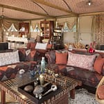 Ten spacious and beautifully decorated en-suite tents, including two family rooms, lie beneath the ana trees, best-beloved of local elephant for their nutritious seeds. The camp’s central living space includes an inviting fire pit for pleasant evenings beneath the African night skies. Other unique features include a pool which overlooks a broad sweep of river, an outdoor “bath with a view” in a secluded, scenic spot, and a romantic Star Bed by a busy waterhole.