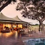 The fresh, open, and airy design of Wilderness Linkwasha is complemented by an eclectic mix of contemporary interiors. Nine luxurious en-suite tents (eight twins and one family unit) offer incredible views, while the main area – including multi-level decks, a pool area and a winter lounge complete with library – overlooks the prolific waterhole.