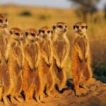 Although Nxai Pan was once part of the great super lake, it is quite different to the Makgadikgadi Salt Pans as it boasts broad hectares of short sweet grasslands with occasional “islands” of trees. The rich grassland provides good grazing and attracts springbok, impala, gemsbok, giraffe, kudu, hartebeest, zebra, wildebeest, all followed by lions and hyena, as well as a wide array of birdlife. The grasslands of the Makgadikgadi hide small colonies of meerkats that have become habituated to people and provide a few hours of rewarding interaction. Baines Baobabs, a cluster of seven Baobab trees are located within the park. The Baobabs were painted by Thomas Baines when he passed through travelling with John Chapman in 1862.