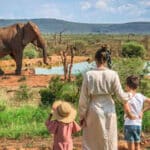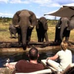 Silently, elegantly, the lodge stands over the waterhole…. watch by flood light under a star-spangled African night sky – the elephants in their play-fighting…. their display of instinctive rituals, their caressing and murmurings…all which speak of years gone by.